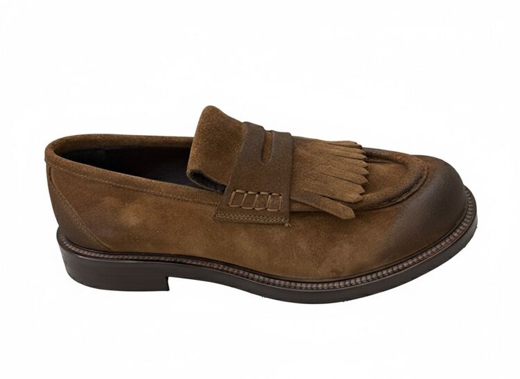 Mocassini in vitello.Tipologia di pellame: vitello crosta Materiale suola: cuoio con battistrada in gomma con altezza tacco di 3 cm.Pellame spazzolato...